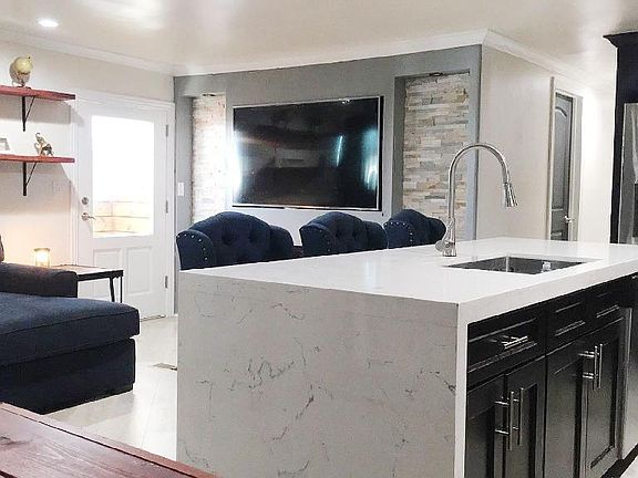 THE MONTHLY SPACE RENT WILL BE $1180. DUE TO YEAR BUILT (1967) OF THE MANUFACTURED HOME, DOWNPAYMENT WILL BE ABOUT 20% AND LOAN TERM WILL LIKELY BE 15 YRS MAX. Updated manufactured home, feels and looks like new. It has been painted inside & out, the windows were replaced with dual pane ones, the electrical wiring was redone and upgraded to 100 AMP panel, the drywall was replaced and insulation was added, the plumbing was upgraded to copper plumbing, and AC zone units were installed in the dining/living room area and master bedroom. The open floor concept has recessed lights, to showcase the chef's kitchen that has been updated with cabinets, Quartz counter tops & back splash, and stainless steel appliances. The island has a seating area on one side, and more cabinets, an over-sized sink, dishwasher, with more Quartz. In the living room wall you have a niche for a flat screen TV, above the fireplace, that has stacked stone accents. The hallway bathroom has tile, updated sink and vanity. In the master bedroom you have herringbone tile, ceiling fan, and another niche for a flat screen TV and more stacked stone. The enclosed side yard, has updated perimeter fence, with lights, and a sitting area. On the other side there is a carport that can fit up to 3 vehicles. NOTE: SALE PRICE INCLUDES THE 2 FLAT SCREEN TVs, FURNITURE IN THE LIVING ROOM, FRIDGE, STOVE, DISHWASHER, AND THE WASHER AND DRYER IN THE STORAGE SHED. The park is close to schools, public transportation and 4 FWYS.
