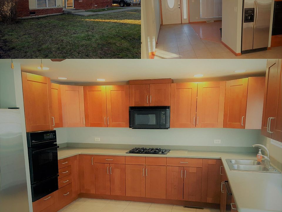 Huge eat-in Kitchen-All appliances including Washer and Dryer-No credit or background Checks-RENOVATED Three Bedroom Single Family Home (one level: no basement) hardwood floors, new carpet in bedrooms, newer kitchen cabinets, stainless steel appliances with washer/dryer included, large backyard with storage shed. walk in closet with lots of organizer shelving units.