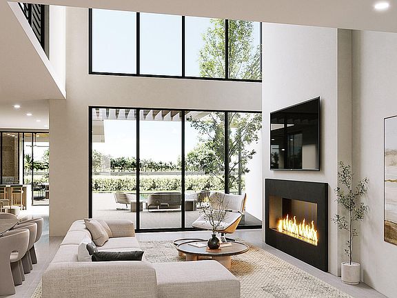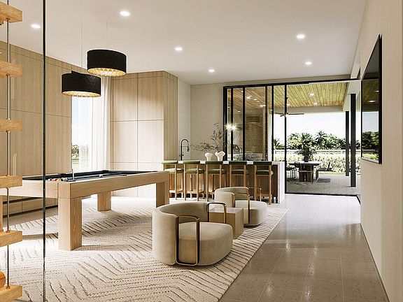 Step into a backyard oasis centered around a spectacular perimeter zero-edge infinity pool with spa and sun shelf. Glass walls in the club room slide away to create a seamless flow between the indoor bar lounge and the covered summer kitchen and dining pavilion.