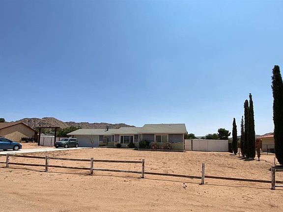 You will feel right at home in this comfy Apple Valley residence which features two bedrooms with their own full bathrooms. Each bath has ceramic tile counters, lots of storage and shower/tub combinations. Bedrooms have mirrored wardrobe doors. 1,367 square feet of living space on .41 acre lot plus a two car attached garage. Spacious living room, formal dining area next to a roomy kitchen with ceramic tile counters, gas range and dishwasher. French doors take you out to the rear covered patio with misters around edges. Central air conditioning, and heat plus an additional window evaporative cooler. The Owner has made the following recent improvements: A large storage shed on pavers less than a year ago, A Vivint Home Security System with Cameras, a new garbage disposal, water heater replaced 2 yrs ago, and a new seepage pit installed 3 yrs ago. Sycamore Rocks area- easy access to I-15 via Dale Evans Pkwy, or Hwy 18 off Central.