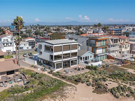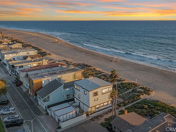 Fantastic New Listing on the Sand in the Sunset Beach area of Huntington Beach! Where is Sunset Beach? It is a quaint & sleepy area of Huntington Beach located just south of Surfside Colony and North of Bolsa Chica State Beach. Due to limited public parking, the soft sands & surfable waves of Sunset Beach are refreshingly less crowded than other Southern California beaches. Those who appreciate privacy are drawn to this remarkable stretch of Orange County coastline, yet it is only a 20 minute drive to Long Beach Airport and less than an hour from your friends & family in most areas of Los Angeles County. This beautiful oceanfront home has an ELEVATOR to all three levels. It was constructed in 1988 and has been substantially enhanced in recent years. It sits on a rare “Sunny” 40 foot wide corner lot with amazing over-the-water sunset views and has approximately 3816 square feet of living area. The full width 3rd floor Primary Suite has panoramic whitewater, sunset, and Catalina views which must be seen to be appreciated… the views can be enjoyed from the sectional sofa area (with fireplace), presidential desk, and the king size bed. Other luxury features in the primary suite include beverage fridge, dishwasher, built-in coffee maker & microwave, two walk-in closets, separate tub/shower, and washer/dryer area. The 2nd floor has an office (could be bedroom), sitting area, and guest room that share a nautical theme hall bath, plus a VIP bedroom with ensuite accessible bathroom with roll-in shower. The entire first floor is an open concept “great room” with fireplace, sofa area, countertop bar (with two wine/beverage fridges, sink, & ice maker), oceanview dining area, and gourmet kitchen with 8 burner range, wok burner, built in refrigerator, 2 dishwashers, beverage fridge, and enough counter space to serve all that you desire to invite to your “get togethers”. Bi-fold doors lead to the spacious patio on the sand and a planted dune which provides both ambiance and privacy. The owner recently had two enclosed garage spaces fabricated, and there is additional parking on site for up to 3 additional cars. This truly special beach home has the combination of parking, bedrooms, and living space which will allow you to entertain all the family & friends you care to invite… If you have been looking for a move-in ready detached house on the sand in Coastal Orange County with all the features anyone could desire in a beach home, this is quite possibly the one.