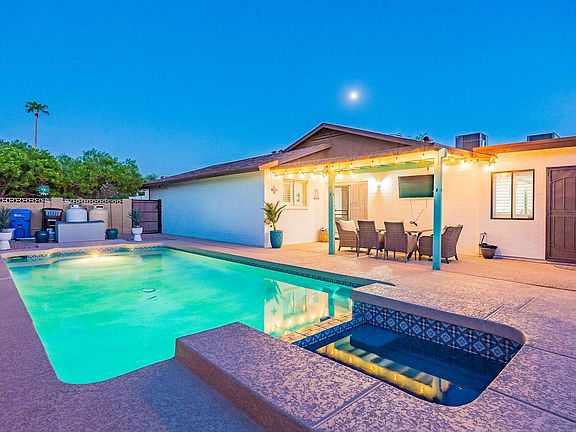 Welcome to this stunning single family home with pool and spa - perfectly situated in one of Arizona's most desirable locations! Inside, you'll find a warm and inviting layout featuring wood-look porcelain tile in the dining and family rooms, complemented by rich dark cabinetry in the kitchen and laundry. Large windows with elegant shutters fill the home with natural light, creating a bright and airy atmosphere throughout. The primary suite exudes luxury featuring a tiled walk-in shower with bench and multiple shower heads! The three guest bedrooms are generous in size and share a full bathroom. Outside you'll discover your own private oasisa spacious backyard designed for both relaxation and entertainment, complete with a sparkling pool and spa. Pool and landscaping service are included as an added bonus. Tenant also has option to set up services to have the pool heated for year-round enjoyment! Located off of Bell Rd and 66th St, you'll be ideally located next to tons of dining, shopping, and entertainment options combining comfort, convenience, and lifestyle in one incredible package.