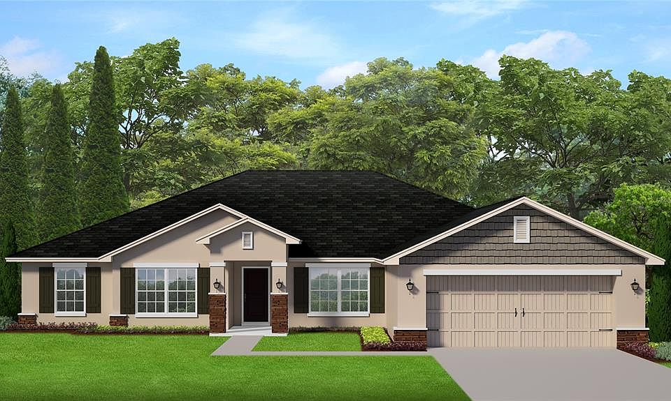 Under Construction. This 2557 SQ FT, 4-2 THIS NEW CRAFTSMAN SERIES BLOCK AND STUCCO CONSTRUCTION HOME IS ON A .98 ACRE LOT ZONED A-1 AND NO HOA. The location is out of town but not far from shopping and entertainment. The Villages and I-75 are only minutes away. This open concept home features a 3-car garage along with irrigation and a covered rear porch to view our beautiful sunsets. On the inside, we have tile throughout and soft carpet in all the bedrooms. The kitchen has Stainless Steel appliances (range, microwave and dishwasher) and upgraded shaker style cabinets and granite countertops that carry over to the master and guest bathrooms. The master bedroom has a tray ceiling and in the master bathroom, we took out the garden tub and replaced it with a 5' tiled shower. THIS NEW HOME COMES WITH A TAEXX IN-WALL PEST CONTROL SYSTEM, 1YR BUILDER WARRANTY AND A 10 YR STRUCTURAL WARANTY.