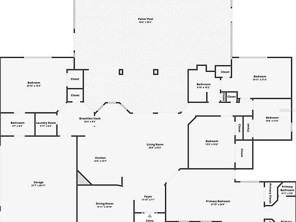 One or more photo(s) has been virtually staged. This is the first time this home has been offered for sale! You will find the choices of were to live in this lovely large bright home are limitless! The rooms flow seamlessly into one another. The sun comes pouring thru the beautiful large windows and french doors. Grand entryway and high ceilings will leave you breathless. The kitchen with its large chef style gas stove will make cooking a breeze. Large island to entertain family or guest. Five bedrooms that are huge two of them have private patios off of them. This home could easily be considered to have several master suites as 3 of the large bedrooms have bathrooms attached to them. This home has been in the same family since it was custom built in 2007. The garage is huge and plenty of space for your toys. The lanai and pool area are huge. The pool is 14x 28 pavers all around out door shower. No rear neighbors. Nice flat lot and very easy to mow. Very desirable location! Make an appointment to see this home.