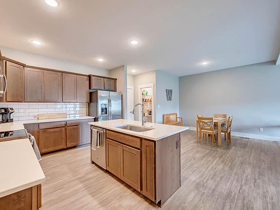 Welcome to Wilden Drive- this 3 bedroom, 2.5 bathroom townhome is like new, located just steps from Shuler Elementary. The main floor offers an airy, open layout featuring a spacious kitchen with stainless steel appliances, quartz countertops, a contemporary tile backsplash, and a walk-in pantry. A generous island with seating plus a dining nook provide plenty of space for meals and family. The living room is filled with natural light from numerous windows, complete with blinds, and a half bath in the hall. Upstairs, you'll find three bedrooms and two full baths, including a bright primary suite with dual sinks and quartz counters. The suite also includes a walk-in closet with a through-pass to the laundry room, where a washer, dryer, and folding table are included. Two additional bedrooms and a hall bath complete the second story. The home also features a two-car attached garage, an unfinished lower level for future expansion, and HOA-covered lawn care and snow removal for easy living.