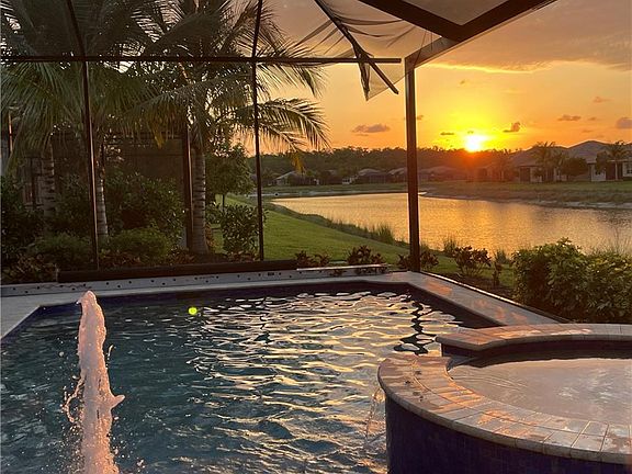 Premium lakefront lotLanai screensOutdoor kitchenColor-changing lightsClimate-controlled garageWater featuresIncredible sunset views