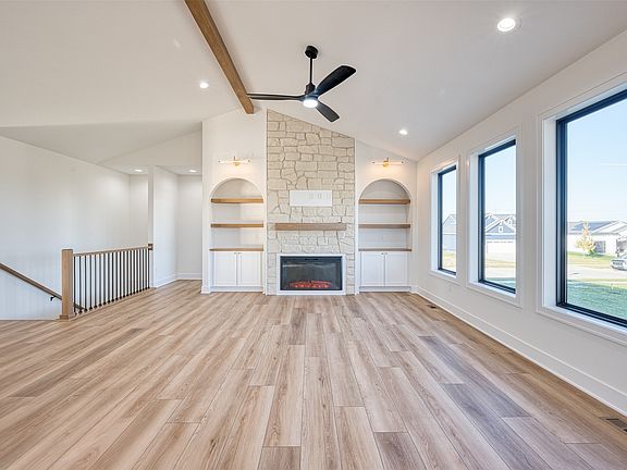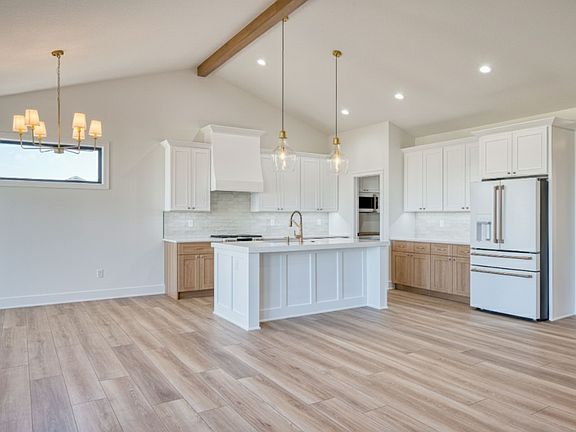 Welcome to this stunning Genuine Homes build, where craftsmanship, design & detail come together to create an unforgettable living experience. From the moment you arrive, the presence of this residence is undeniable. Graceful archways, vaulted ceilings with wood beams, and gallery lighting set the tone for timeless elegance. The gourmet kitchen is a true showpiece featuring Café Series appliances, quartz countertops, custom cabinetry, and an expansive walk-in pantry. The open-concept living area centers around one of three stunning fireplaces, creating warmth & character in every corner. On the main level, you’ll find the primary suite-a serene retreat with its own fireplace & accent wall, a spa-like ensuite with a walk-in shower, and an oversized closet designed for luxury & function. A second ensuite bedroom, laundry room, mudroom and a convenient half bath complete the main floor. The walkout lower level is just as impressive, offering a large family room with fireplace & wet bar, two spacious bedrooms with custom closet shelving, and a full bath. A beautiful tucked-away office space includes a secret hidden room, making this level truly memorable. Upstairs, enjoy a covered deck overlooking the large lot-perfect for entertaining or peaceful evenings. Additional highlights include a dual-zoned HVAC system, a huge storage room, and an epoxied 3-car garage with 220 outlet. Every inch of this home reflects intention, quality & elegance-Ask for more details today!
