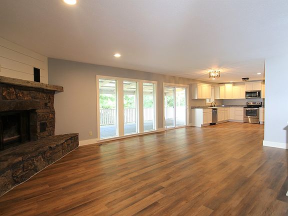 2600 SF 4BR/3.5BA, oversized 2-car garage with 8' door. Covered double-decker deck across the entire house sitting on 1.5 acre lot. Rural water, new plumbing, HVAC, electric, appliances, cabinets, floors, paint in and out. Stone wood-burning fireplace in living room, wet bar in downstairs 2nd living area, granite countertops throughout.