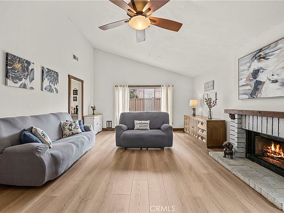 Welcome to the LARGEST and BEST PRICED home in this neighborhood! This beautifully remodeled 4-bedroom, 2-bathroom townhome at the end of the cul-de-sac shows light and bright with fresh, modern updates throughout! The moment you step inside, you’re greeted with stunning, newer wood-like flooring in the spacious living room that features a ceiling fan and fireplace and flows seamlessly into your remarkable kitchen, thoughtfully designed with newer quartz countertops, stylish beige cabinetry accented by matte black hardware, sleek stainless steel appliances, newer single-basin sink with a modern commercial style faucet, a pantry, and recessed lighting that brings the whole space to life. Downstairs, you also have one bedroom and a three quarter bathroom with two sinks and walk-in shower—perfect as a downstairs primary primary suite or serving family and live-in guests. Upstairs you’ll find your 3 additional bedrooms and a full bath with one of those bedrooms that stands out with its massive space providing endless possibilities as a game room, theater room, play room, home office, etc., and it even includes a spacious walk-in closet offering flexibility and convenience. Freshly laid sod completes your large and spacious backyard and side yard with no rear neighbors! WiFi enabled washer and dryer is included in the sale and located in your 2 car garage. You’re just a short walk away from some of the HOA amenities including a pool, spa, tennis court, and basketball court—everything you need to stay active and unwind. Not to mention, you're close to lots of shopping, dining, and the 14 freeway. Don’t miss the chance to own this upgraded, move-in ready townhome in a well-maintained community with fantastic amenities. Schedule your showing today and make this gem your own!