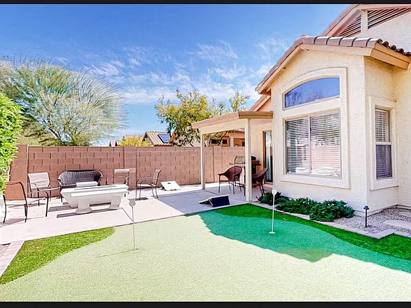 Furnished modern house with rent min 30 days and utilities allowance or long term rental can place in your name. Mail is PO Box option. Putting green and fire pit and BBQ with paver shaded patio. Automatic irrigation