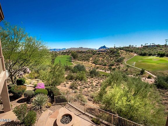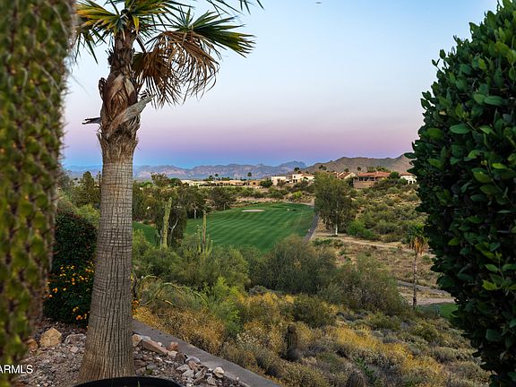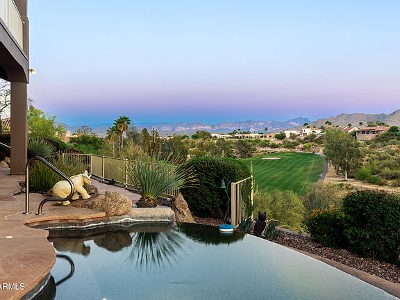 Experience the true beauty of nature at this stunning property nestled amidst lush greens and majestic mountains. This home is located in one of the most desirable areas of Fountain Hills. It is perfect for one family or multi-generations. Circular paver driveway and gorgeous water feature leads to entry with an impressive front door opening to a spacious and inviting great room with a wall of windows leading to a wrap-around balcony allowing you to take in the breathtaking golf course and mountain views.The large eat-in kitchen is has a huge breakfast bar, prep island with stainless appliances. It is equipped with abundant storage and a multitude of cabinets. Enjoy your morning coffee in the breakfast room looking out at the spectacular views. The private master suite offers a wall of built-ins and a gorgeous bath w/separate tub & large walk in shower/Huge closet, the Guest bedroom and office also on the main level. Total on main level...2 bedrooms & office 2 1/2 baths, great room, formal dining, kitchen, breakfast room, laundry and oversized three car garage. You will be amazed at how much storage this home has.