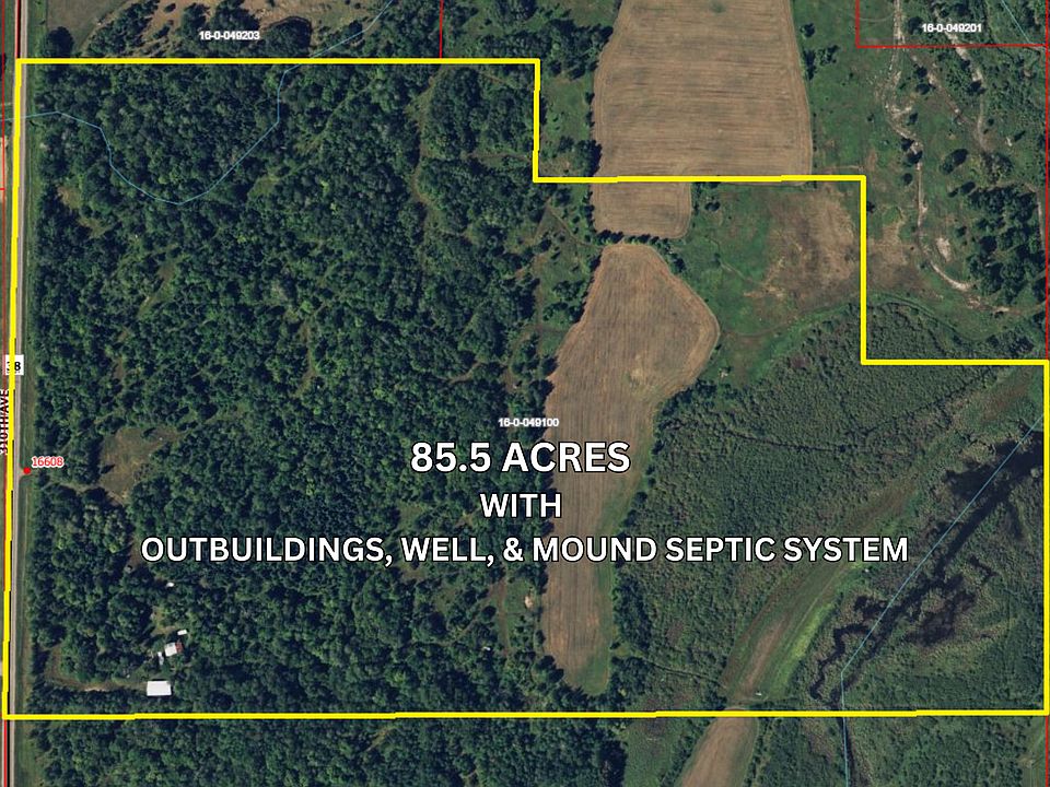 Take a close look at this rare opportunity to buy 85-acres of prime recreational land that includes buildings, electrical, well and septic system, and located off of a tar road. The property features a lovely creek with bridge crossings, miles of trails, several meadows throughout the pines, oaks and maple trees and also multiple apple trees including honey crisp and snow white. Easily farm your own food plots in the existing 12-acre of hay field. Conveniently located just 2.5 miles from Lake Mille Lacs public water access. Buy this land today and start making memories just as the current owners have over the past 25 years. The 24'x26' garage was built in 2001 with 2x6 construction, 10' ceiling, includes a concrete floor, (2) 9'x8' overhead doors, fully insulated and heated with electric or Hot Dawg propane heater. Next to the garage is a 16'x26' lean-to with steel roof. Another great asset is the 3-bedroom sized mound septic system that was installed in 2002 along with a drilled Well with 4" casing. There's a 8'x14' bath/well house that includes a shower, toilet, sink, water heater, electric heat and well pump. The most recent building added to the property is the 32'x56' pole shed that was built in 2015 and includes a 16'x9' OH door and 8'x9' OH door. There's also a few fish houses on the property used as bunk houses and storage sheds.