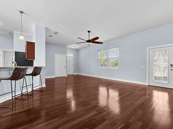 Comfort Meets Classic Charm in Heritage Oaks! This beautifully maintained 3-bedroom, 2-bath home offers the perfect blend of style, space, and convenience. Step inside to discover an open and airy layout highlighted with high ceilings, rich flooring, and plenty of natural light. The spacious living area flows seamlessly into a well-appointed kitchen featuring a breakfast bar, ample cabinetry, and a large pantry—ideal for gatherings or quiet evenings at home. A separate dining room with expansive windows creates a warm and inviting setting for meals. The private owner’s suite offers a walk-in closet and a bath boasting double vanities, a roomy walk-in shower, and a private water closet. Two additional bedrooms provide comfort and flexibility for family, guests, or a home office. Heritage Oaks is a charming neighborhood with sidewalks throughout, perfect for evening strolls, easy access to Publix, I-75, and nearby shops, dining, and schools. Thoughtfully designed and move-in ready—this home truly checks all the boxes!