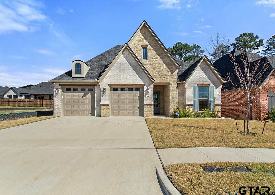 Did someone say dream home??! This gorgeous brick and stone garden home in the new gated subdivision of Garden Homes at Legacy Bend is one of our favs! The curb appeal really stands out and draws you in. Foyer has tall ceiling, lovely wainscoting and light fixture. The kitchen has it all with custom cabinetry, quartz countertops, gas cooktop, wall oven, built-in microwave, stainless dishwasher, refrigerator, disposal, designer tile backsplash, lovely hood, and gold fixtures and faucet, island breakfast bar, and awesome walk-in pantry. Pendants above are the perfect decorator touch! Large buffet style cabinetry by refrigerator would be perfect for entertaining, coffee bar, or an extra display area. Gallery light is ready for your favorite painting or photo. Living dining combo has soaring vaulted ceiling, tons of natural light, wood floors, room for your big dining table and chairs, plus your living room furniture. Fireplace is pretty special and has gas logs. Primary bedroom is split from the other guest bedrooms. Check out the tray ceiling. Spa bathroom has beautiful finishes. Quartz countertops on the dual vanity, pretty mirrors and lighting, designer tile shower, free-standing tub, private water closet, more gold hardware and finishes, and a huge closet with large built-in dresser. Two guest bedrooms flank the full guest bath; and there is a show-stopper of a half bath as well. Don't miss it! Office is on the back of the house and is just the right spot to knock out some work or homework. Utility room has a stylish tile checkerboard floor and extra storage. Two car garage with openers. Throughout this home you will find upgraded hardware, door knobs, fixtures, and details. HOA maintains front and back yards! If you are looking for a beautiful, easy to maintain home in a great location, I think you just found it! Welcome home!