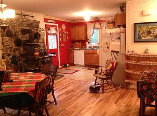 HOME SWEET HOME! Privately set back from the road, this lovely 3 BR cape is just waiting for another owner to call it home. Offering fully applianced kitchen with woodstove hookup and fieldstone hearth opens to dining room with hardwood floors and custom window treatments, front to back living room with gas fireplace and deck access, a full bath finishes the first floor. The second floor offers master BR with walk-in his & her's closets and access to full bath, 2 more bedrooms and full bath complete the picture. Basement is unfinished with workshop and laundry areas (washer/dryer stay) and includes a Powermate Contractor 4200 generator for power outages. Sellers are moving due to job transfer and can close quickly. Lovely private lot, surrounded by natural glacial formations make this a truly special spot! New custom shed, garden area and lovely farmer's porch! Call today!