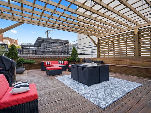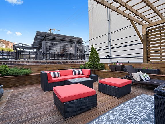Experience luxury living in this stunning 3-bedroom, 3-bathroom townhouse in the highly sought-after Lincoln Park neighborhood. Designed to feel like a single-family home, this residence features a PRIVATE garage rooftop deck and thoughtful finishes throughout. The bright, open-concept layout is perfect for entertaining, highlighted by a spacious living room with large windows, hardwood floors, a cozy fireplace, and room for an oversized sectional. Step directly onto your expansive 600 sq ft private deck-perfect for indoor-outdoor gatherings. The chef's kitchen offers a large quartz island, stainless steel appliances, a wine fridge, and a dedicated dining area. All three bedrooms are generously sized, including the primary suite with an updated en-suite bath, dual vanities, and custom Elfa closets. Additional features include a laundry room, crawl space storage, a private garage-all located on a quiet, tree-lined street. Just steps from top-rated restaurants, shopping, Whole Foods, Trader Joe's, Michelin-starred dining, and public transit for a quick downtown commute. Don't miss your chance to explore this incredible home-click the 3D button for a full virtual walkthrough!