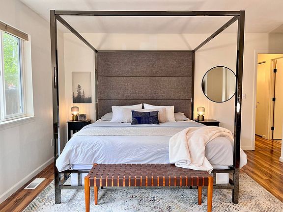 Available for 30+ day stays. Available April 29, 2025. This modern and fresh 3BR(1Office)/2BA Westside Bend home is just one block away from the happening Galveston Corridor. Mid-century modern furnishings throughout and close proximity to everything Bend has to offer. Walk or bike to trails, downtown, restaurants and breweries, the Deschutes River, and more! Highlights include a spacious living/entertainment area, lofted ceilings, great natural light, a separate office room as well as additional desks in each bedroom for home offices, a private back deck, and a spacious outdoor patio. Head out for your daily adventures and come home to cook up meals in the well-equipped kitchen or opt to head down the street to Bend's best eateries and brewpubs. LIVING AREA Settle down in the light and airy living area. Thoughtful mid-century modern furnishings with a large smart TV make it a comfortable place to relax. KITCHEN & DINING The well-equipped kitchen can handle it all. Plenty of countertop space and a gas range will help you tackle any culinary ambitions. You'll find all the kitchen gadgets you may need such as a coffee maker, water kettle, toaster, blender, cooking utensils, pots/pans, and more. Brand-new stainless steel appliances and quartz countertops make the kitchen shine. Enjoy your meals at a modern dining table that seats four or at the kitchen island. BED & BATH This rental comfortably accommodates four guests in two bedrooms. The master bedroom is furnished with a king-size bed. The bed features an open canopy design and a tufted headboard upholstered in linen for a modern look. Furthermore, you will discover a convenient nook featuring a small TV for your entertainment needs. If you need to catch up on work, you will find a full-size sit-stand desk and a comfortable office chair, making it a versatile space for your convenience. The second bedroom is thoughtfully furnished with a comfortable queen-size bed, a contemporary dresser, and a charming desk. Stay organized during your stay with ample closet space and convenient shelves. You'll also appreciate the large windows equipped with blinds, allowing an abundance of natural light to fill the room while offering privacy when needed. Both bedrooms come complete with private bathrooms for your comfort and convenience. The master bedroom boasts an ensuite bathroom with a tile walk-in shower, two vanities, and a walk-in closet, providing ample space for your daily routines. Meanwhile, the second bedroom has its bathroom just across the hall, featuring a tile walk-in shower and a spacious vanity with plenty of storage to accommodate your needs. HOME OFFICE Discover the ideal work-from-home setup in our thoughtfully designed space! The 3rd bedroom is a dedicated home office. It's fully furnished with a spacious full-size standing desk for productivity, and an ergonomic office chair for comfort during those long work sessions. This separate office room provides the perfect private sanctuary for remote work. But that's not all! The master bedroom, as mentioned above, is also equipped with a full-size standing desk and a comfortable office chair, creating a versatile second workspace. This means two people can comfortably work from home simultaneously. It's the perfect solution for remote professionals, digital nomads, or anyone looking to balance work and leisure seamlessly. OUTDOOR AREA & AMENITIES The front patio with a BBQ is the perfect place to relax and watch the world go by. Enjoy your morning coffee on the private south facing deck off the master bedroom. EXTRA PERKS & MORE DETAILS Perks include complimentary Wi-Fi, two sit-stand desks, separate office, a washer and dryer, BBQ, ironing board, hairdryer, and more. Street parking is free and it's easy to find a spot right in front of the house. The entrance to this single-story home is located down three single steps. THE LOCATION This home is located one block off the Galveston Corridor where you will find numerous popular dining options and brewpubs. It's only a 5-10 minute walk to reach the action. Drake Park and downtown Bend are approximately 1 mile away and it takes 5 minutes by bike or 15-20 minutes to walk. The Old Mill District is just 1.5 miles away. At the end of the street, you can explore the trails at Overturf Park or ride to Phil's Trail network (3 miles) by bike. Hit the slopes at Mount Bachelor (21.5 miles) or hike Shevlin Park (2 miles). Please note that an ADU is located on the premises. DETAILS Available: 04/29/2025 Security Deposit: $4,500 All utilities and internet are included. Pets: One dog is allowed. No cats. No smoking. A $300 nonrefundable cleaning fee will be charged to the tenant so the home can be professionally cleaned at the end of your stay.