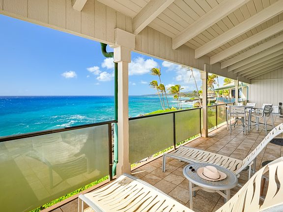 Captivating views define this rare oceanfront condo, poised on the bluff of Kauai's southernmost point. Perfectly situated in sunny Poipu, it offers a unique opportunity to own a slice of paradise, with breathtaking proximity to the Pacific. An exceptional retreat for both homeowners and investors, where dreams become reality.<br><br>Thoughtfully designed with expansive interiors perfect for hosting gatherings, this luxurious, original-owner condo showcases island elegance. With a private entry, upper-level location, and impressive rental history, it offers a blend of privacy, comfort, and exceptional investment potential.<br><br>Step onto the lanai to soak in panoramic ocean views of sunrise and sunset. Indoors, enjoy modern touches like granite and Koa wood countertops, newer appliances, and upgraded Coast windows.<br><br>Details:<br>- Rebuilt in 1993-94<br>- 2 bed, 2 bath<br>- 1,871 sqft of interior space<br>- 473 sqft of lanai area<br>- 9+ ft vaulted ceilings - upper level<br>- Expansive lanai with ocean, sunset, and sunrise views<br>- Granite and Koa wood countertops<br>- Newer appliances, sinks, and hardware<br>- Upgraded Coast windows/sliders in the 2nd bedroom and East-facing living/dining rooms<br>- Reupholstered living room couch & large chairs<br>- New furniture throughout<br>- Upgraded Coast windows/sliders in the 2nd bedroom and East-facing living/dining rooms<br>- New ceiling fans in the living room<br>- Air conditioning in two bedrooms<br>- Koa bedroom pocket doors<br>- Koa cabinet doors in bathrooms<br>- New tile in entryway and lanai<br>- Ample storage & pet-friendly policies<br><br>Amenities include a swimming pool, spa, tennis and pickleball courts, sun deck, and BBQ area. Steps from the Maha'ulepu Heritage Trail, the Hyatt Resort, and Poipu’s best dining, shopping, and beaches, this property is perfect for adventurers and those seeking a prime island lifestyle.<br><br>This is your chance to own Kauai’s finest oceanfront living—don’t miss out!