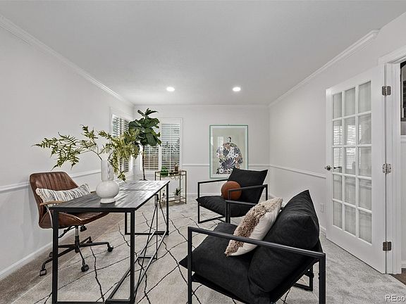 Discover a home reimagined for modern living, where every detail has been thoughtfully curated to elevate style and comfort. Situated in the heart of Highlands Ranch, this residence combines timeless design with contemporary updates that make it truly unique. The newly renovated kitchen features sophisticated cabinetry, a striking backsplash, stainless steel appliances, and quartz countertops that marry elegance and practicality. Adjacent to the kitchen, the breakfast nook offers a bright and welcoming space, perfect for casual dining. The home’s open airy layout is filled with sunlight, enhanced by plantation shutters and refined crown molding. The den, framed by elegant French doors, offers a versatile space ideal for work or relaxation. The formal dining room captivates with a charming bay window, updated lighting, and a timeless chair rail. Both spaces are beautifully designed and seamlessly integrated, maintaining the functional flow while providing distinct areas for dining and productivity. The primary suite is a true retreat, with a vaulted ceiling, a spacious layout, and a refreshed ensuite. The ensuite hosts dual sinks, a soaking tub, and a fully remodeled shower, all harmoniously blending modern finishes to create a spa-like experience. The guest bathroom has also been thoughtfully updated with stylish new fixtures and finishes, ensuring a fresh + polished look. The fully finished basement provides flexible space for recreation, hobbies, or additional needs, with brand-new carpeting throughout. Adding to the home’s appeal is a brand new HVAC system and roof repair, ensuring year-round comfort and efficiency. Outside, the backyard is an entertainer’s haven, featuring a stamped concrete patio perfect for outdoor dining and a grassy area that invites endless possibilities for leisure and play. Conveniently located near C-470, top-rated schools, premier recreation centers, and scenic trails, this home offers the ultimate Colorado lifestyle.