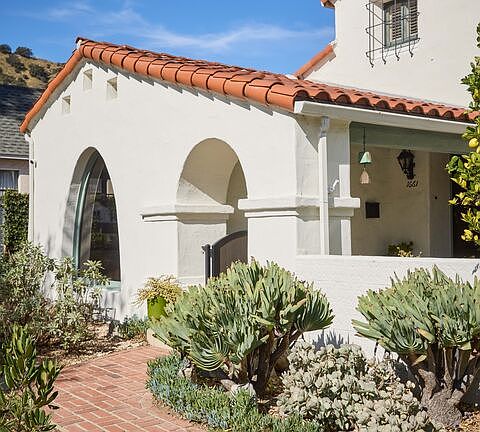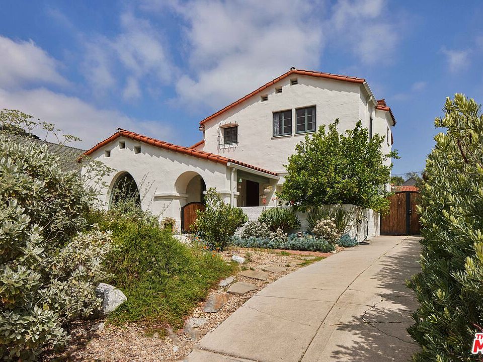 Experience this thoughtfully restored and upgraded 1930s Spanish Colonial Revival, nestled in the coveted Verdugo Woodlands neighborhood. A private walled front courtyard shaded with mature lime and lemon trees welcomes you, with the original wood front door opening onto the elegant entry hall. Arched doorways lead off the entrance into an expansive living room on the left and formal dining room on the right. The light-filled living room features restored hardwood floors, hand-hewn mahogany fireplace with Claycraft tiles and hand-painted wood ceiling beams. A large arched picture window frames a peaceful view onto the mature native plant front garden. Space-defining lighting from Isamu Noguchi, Charlotte Perriand, Poul Henningsen and others is featured throughout the house, with a vintage Mission style wrought iron chandelier dramatically illuminating the stairwell. The chef's kitchen and pantry have been recently upgraded with Miele appliances including a new induction cooktop. The large kitchen opens onto a second dining space with a wood and beam cathedral ceiling and bay windows architecturally framing the view. Off the kitchen, a wide media room opens out through French doors onto the saltillo-tiled pool area. The newly equipped Aqualink controlled saline lap pool and spa add to the serene feel of the home; the ample backyard is anchored by a mature olive tree, Weber gas grill, outdoor dining area and room to play. Upstairs are three bright and airy bedrooms with restored hardwood floors and unobstructed treetop views. The principal bedroom features a partially wood paneled walk-in closet with picture window. The generous-sized pair of secondary bedrooms, drenched in light from multiple wood framed windows, are ample in closet space. The upstairs also has a second spacious full bathroom with original tilework and period touches. Completing this self-contained oasis is a pool house space complete with a full bathroom, HVAC, built-in cabinets, stone countertops, storage closet and adjoining laundry room. Climate-ready and efficient, this home was substantially updated in 2023 with attic, wall and floor insulation, new duct work, 3.5 ton Mitsubishi heat pump HVAC, smart thermostat, upgraded electrical panel with new subpanel, high efficiency electric heat pump water heater, discreetly sited and fully owned solar panels, outdoor security cameras and more. Historic Verdugo Woodlands is known for its quiet walkable tree-lined streets, stunning mountain views, local parks, and proximity to the Montrose shopping district, where the community enjoys a mix of local restaurants, shops, farmers markets, and more. Enjoy a surprisingly modern and lovingly maintained Woodlands getaway home to buy and keep.