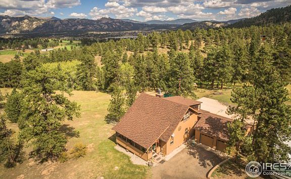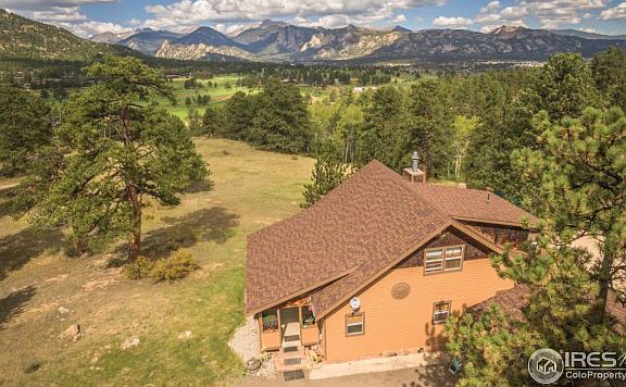 Rare home on Windham Ct, built in 1923 with extensive remodels over the years. Well maintained "Old Estes" home on 4+ acres. Main level living with 2 master bedrooms one up and one on main level, vaulted original wood ceilings, large kitchen, dining area, laundry, walkout to covered porch, Unbelievable views of snow caps and golf course. A/C for summer comfort. Upper loft office has 2nd fireplace, master with Jacuzzi bath. 2 car garage with workshop area. On its own well.