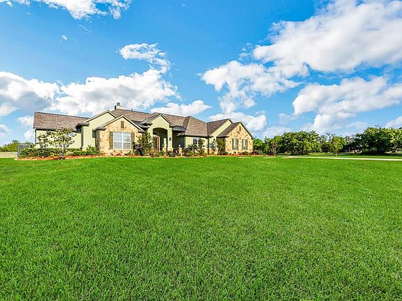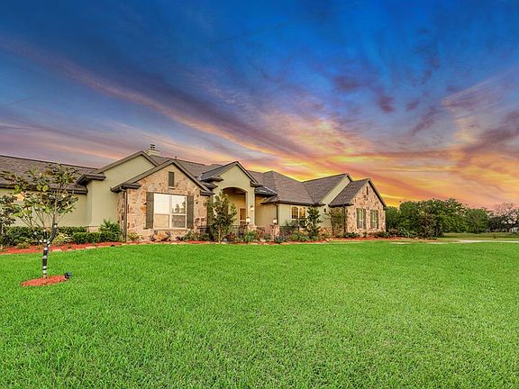 Country Luxury at it finest located in Suncreek Ranch Estates just minutes from Downtown Houston & Med Center! Step past the welcoming courtyard through the double leaded glass doors & you'll find an awesome floor plan loaded with CUSTOM EVERYTHING! Amazing family room with wood beam on ceiling, wall of built-ins, gas fireplace & floor to ceiling double glass doors...open to the incredible gourmet kitchen with Jennaire appliances, incredible walk-in pantry, gorgeous granite counters and cabinetry & more. Master retreat has sitting room and true luxury bath, Guest retreat with private access, full kitchenette & private bath. Bedroom 3 is en suite. Bedroom 4 has great built-ins. Your outdoor oasis awaits you overlooking the 2.5 acre fenced area with pond ready for horses! TWO patio areas one with outdoor kitchen & the other with fireplace & TV area. Storage building wired for electrical. Electrical box already in place for pool, barn, etc. Parking for RV or boat. Call for tour NOW!