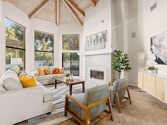 Inside, soaring high ceilings and an open-concept floor plan create a warm, inviting atmosphere from the moment you step through the door. The living room features plush seating, a cozy fireplace, and plenty of space for movie nights or game nights with family and friends.