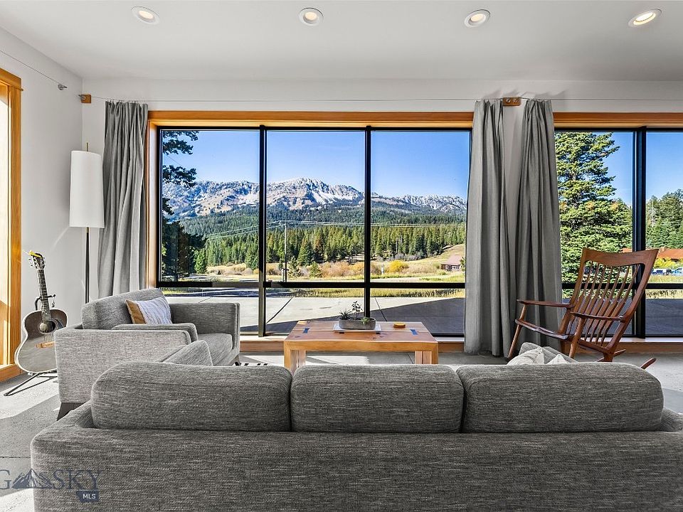Bridger canyon locationSleek designHot tubVast picture windowsNatural wood tonesTwo bathroomsThree bedrooms