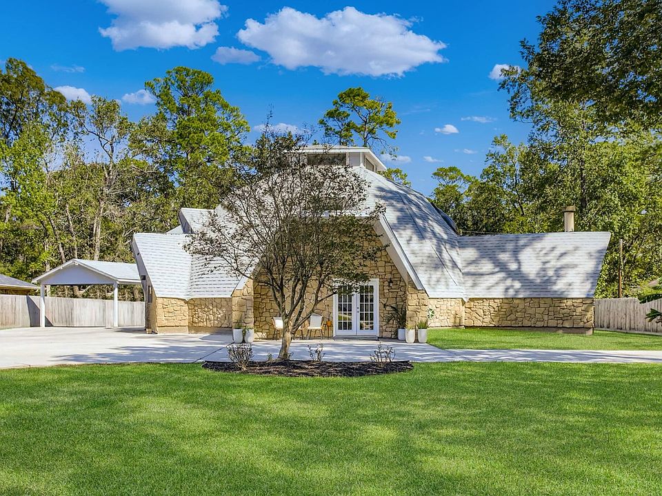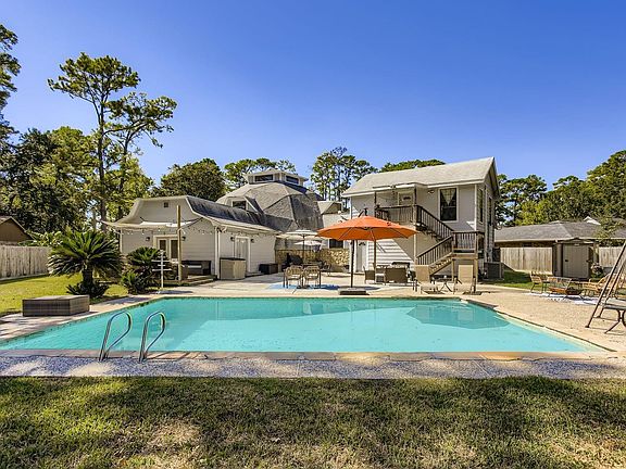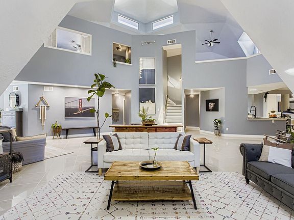 Welcome to this one-of-a-kind dome style home featuring thoughtful design and generous living spaces. Step into a large living room anchored by a fireplace, then move seamlessly into the modern kitchen outfitted with a spacious island that includes bar seating and opens directly into the dining room. The primary bedroom serves as a private retreat, with an ensuite bath boasting dual sinks, a walk-in shower and a walk-in closet. Within the main section of the home you’ll find two additional bedrooms, while upstairs offers a versatile loft area perfect for media or office use, a dedicated gym space, and a separate guest suite with its own private entry.