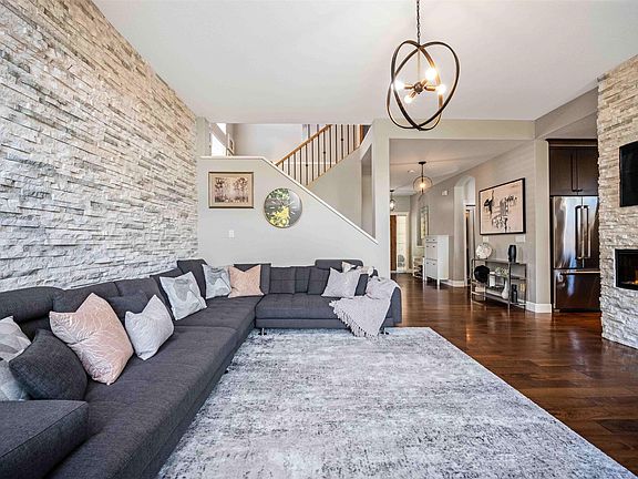 Hardwood floorsRock-wall fireplaceGourmet kitchenHigh-end appliancesGranite countersBuilt-in wine fridgeLuxurious primary suite