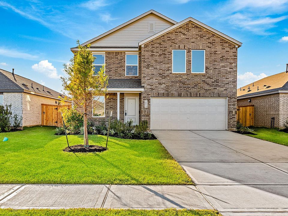 Brand new 4-bedroom 2.5 bath home located in The Grand Prairie in Hockley. Welcoming front porch allowing access to the formal Entryway, enter into the family room with views over the back yard. Open Concept living space with lots of Natural Light. Kitchen comes with Refrigerator, quartz counters, deep stainless steel sink and White Cabinets. Counter has enough space for Bar stools and is open to the dining area. Work your way upstairs to the wonderful game room, other bedrooms and the game room. Primary Suite on the first floor faces the back of the property with ensuite bathroom, walk in shower, a sink, quartz counters and large walk in closet. Other 3 bedrooms have a similar size and share a bathroom with shower/tub combo. Close to Highway 290 and an easy commute to Tomball, Spring. Close to dining, shopping. This home is move in ready with a brand-new washer, dryer and refrigerator making move in easy.