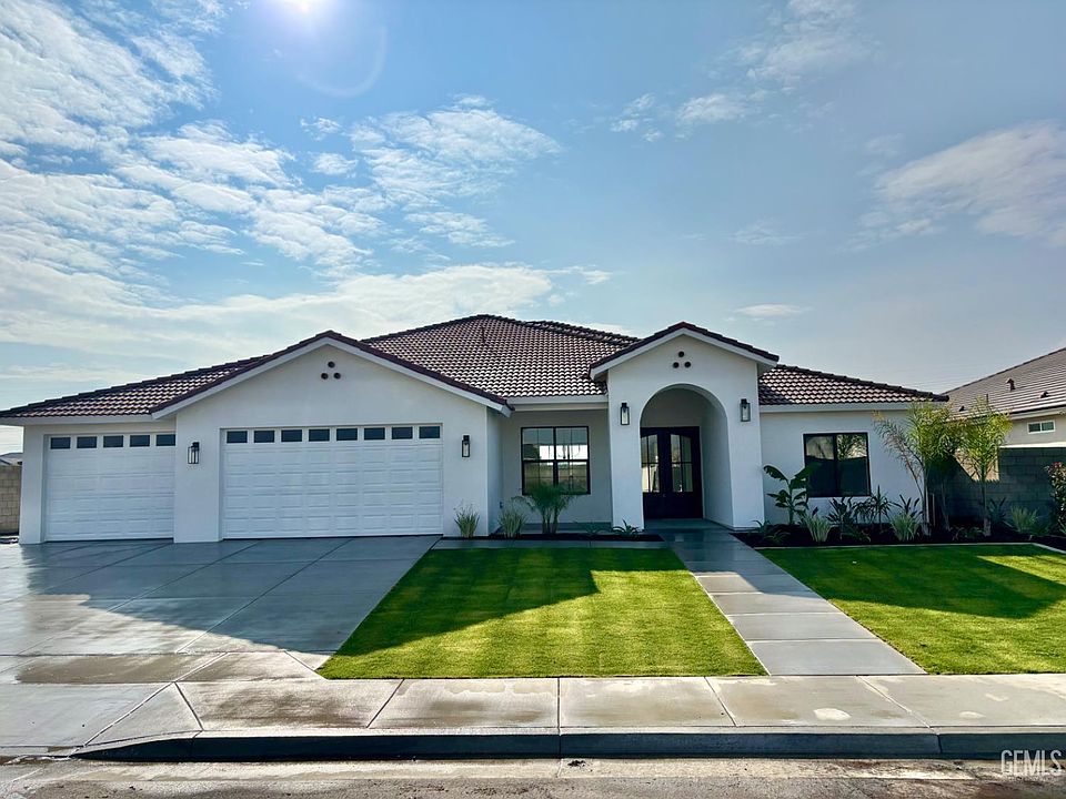 Be the first to own this stunning 3,000 sq ft Spanish-style home, situated in Manorwood Square. This spacious 4-bedroom, 3-bathroom residence features an open floor plan with a versatile bonus game room perfect for entertaining or relaxing. Enjoy elegant tile flooring, sleek quartz countertops, and KitchenAid appliances. As an added bonus, you'll find that this home is one of the last few new homes to have a gas range and a paid NEM2 solar system. Outside, the home offers a 3-car garage, dedicated RV parking, and Spanish architectural details.