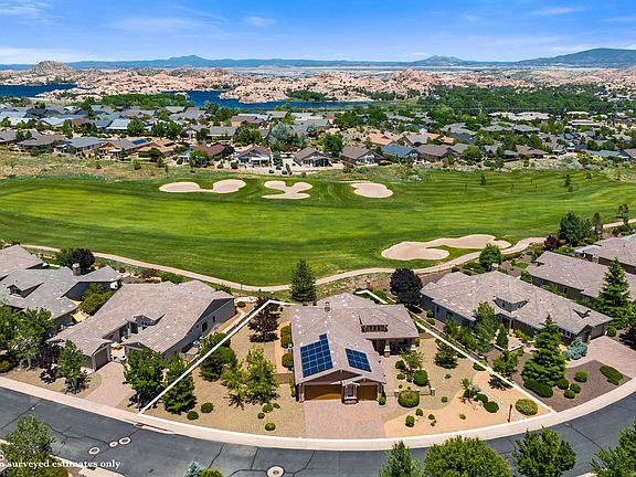 Welcome to the Lakeside neighborhood at the prestigious Prescott Lakes. Situated on a 0.36 acre lot right on Hole #11 with panoramic views to the golf course and the Granite Dells! Private back patio with water feature and views. This home is a split floorplan with 3 BR/2.5 BA/ laundry room, office, den , formal dining area, den and breakfast nook. The 3 car garage has epoxy flooring and built-in cabinetry. This is move-in ready and professionally cleaned! Lakeside Club Membership Dues are required $152.14 monthly . The buyer is required to pay a one time fee pay .005% of the agreed upon sales price to the Club at Prescott Lakes.