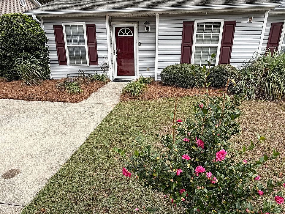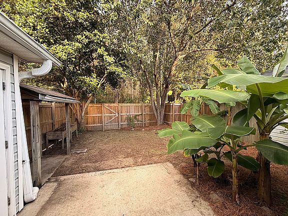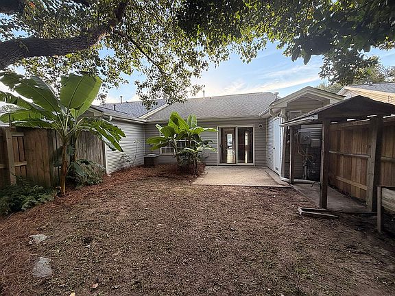 Exterior Features: End unit for privacy and natural light Private patio with newly fenced backyard Established plantings: fig tree, garden roses, muscadine, and banana trees Relaxing pond view Nestled adjacent to a expansive walking trail throughout the community