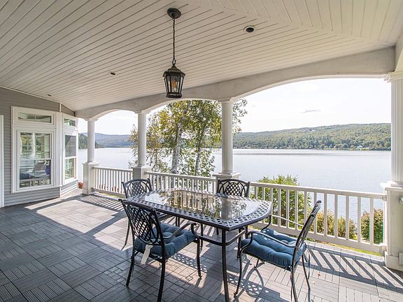 Phenomenal setting on Crystal Lake for this beautiful home! Located on .57 acre at the end of the road, with wonderful westerly views overlooking the lake, you’ll have approximately 215’ of lake frontage that includes a shared sandy beach at the northern edge. Magnificent sunsets are yours to enjoy from many vantage points, whether you’re outside on the grounds, relaxing in the gazebo or on the wrap-around covered porch, and even inside the window-filled home. The main level provides a nice open flow, from the sunroom to the dining area and kitchen, and over into the living room, where you’ll find a gas fireplace with a fieldstone surround. There is a main floor bedroom, ¾ bath with a tile shower and sauna, as well as an office that could be converted back to a bedroom. Head upstairs to the gorgeous primary suite with windows offering a panoramic view of the lake, built-in window seats, a gas fireplace, en suite ¾ bath, and a walk-in closet. The full basement with an overhead door makes it easy to store water toys. Landscape features include perennial beds, low-maintenance ground cover plants and bushes, mature trees, and lawn areas. Along with the beach, there’s a private dock and a nice area for launching kayaks, canoes, and paddleboards. Acreage and frontage subject to final survey to be done at the seller’s expense prior to closing.
