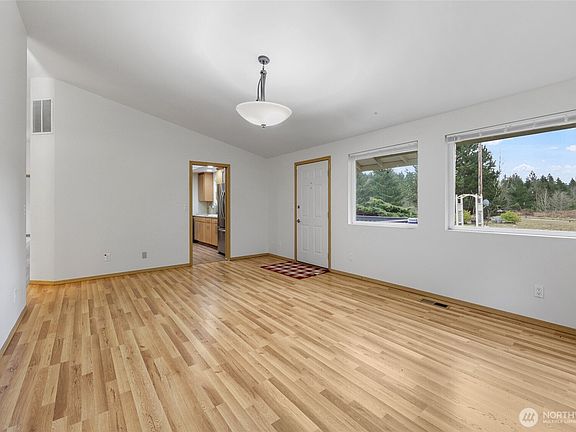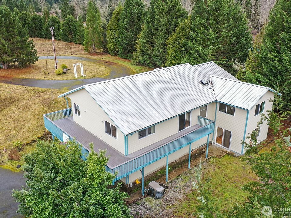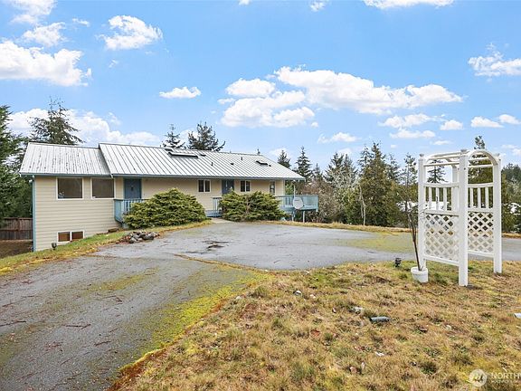 Spacious one story home with basement. 2,954 Sq Ft interior on a private 5.04 acre lot. Estate with gated entry, circular driveway, with panoramic views of Bald Hills and the Olympics! Keep your RV and classic cars in the 2,160 sq ft shop and store more goodies in the separate 576 sq ft boathouse. The 15kw generator can keep the house cozy in a power outage and the metal roof helps shed the snow in winter. Upstairs you will find the master bedroom with a 5-piece master bath, remodeled kitchen, and second bedroom. Downstairs is the finely appointed finished basement, which features a family room, office, and a bedroom w/ slider access to the outside.