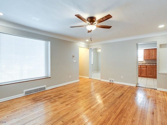 Welcome to this spacious and well-maintained 4-bedroom home offering 1,413 sq ft of comfortable living space in a highly convenient Cleveland location. The oversized kitchen is a standout feature, complete with newer maple cabinetry, durable Formica countertops, and ceramic tile flooring that flows seamlessly into the dining area—perfect for everyday meals or gatherings. The inviting living room offers plenty of natural light and showcases beautiful oak hardwood floors, creating a warm and welcoming atmosphere.