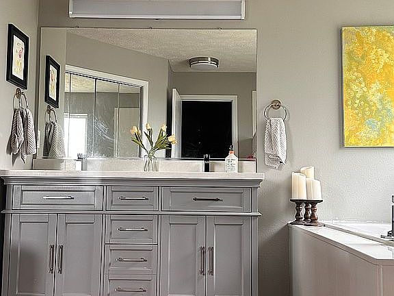 Gleneden 2 story home on a large culdesac. Open concept with gas fireplace. Spacious remodeled kitchen with Alder cabinets, quartz countertops, stainless appliances and built in baking station. Eating bar, island and great room are perfect for entertaining. Large master suite with soaking tub and separate shower with dual shower heads. Main floor laundry with sink. Finished basement with media room, playroom or workout space. 3 car garage. Finished basement with media room, playroom/workout room and large basement bedroom and 3/4 bath. Great space to raise a family. Main floor bedroom and bathroom. Three bedrooms and two bathrooms upstairs. Huge deck and large fenced backyard with sprinkler system, fruit and shade trees and raspberries. Storage shed. Mead school district. Easy access to Midway Elementary.