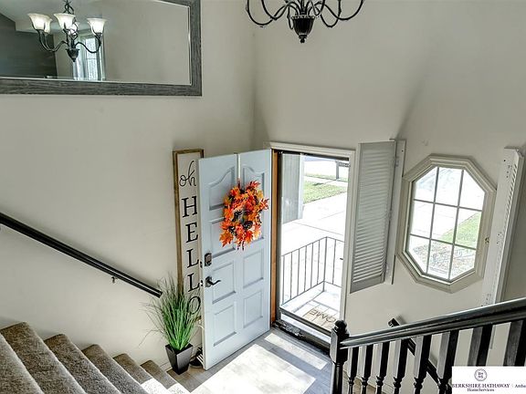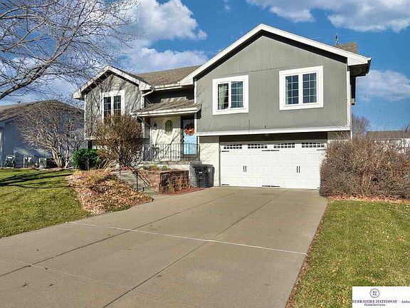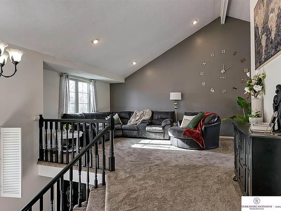 Prepare to be impressed by this one! Beautiful open entry and floor plan with soaring ceilings throughout the main floor. Large living room is open to a completely updated eat in kitchen featuring stack stone back splash, newer hard surface flooring & SS appliances all included, Dining area leads to a new large deck overlooking fully fenced yard with landscaping. Large master bedroom with vaulted ceiling and full master bath. Beds 2 & 3 also have vaulted ceilings. Plenty of room to hang out in the cozy, finished lower level with fireplace. Super clean laundry and half bath with vinyl floor. Space under stairs for desk or just lots of storage. Oversized 2 car garage with new garage door, This is an unbeatable location close to all your Millard Schools and close to Village Pointe, Dodge Exp, Legacy, Lakeside, Restaurants & Shopping.