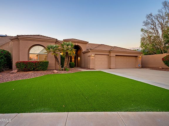 Cozy mornings start on the patio. Enjoy effortless AZ outdoor living in this backyard paradise perfect for entertaining or relaxing under the desert sky. Large, north-facing lot provides a private setting with sparkling PebbleTec pool, mountain views & plenty of charming patio gathering spaces and mature landscaping. Easy care synthetic turf graces the front yard and back. Your 3 car garage provides convenient built-in storage, epoxy flooring.