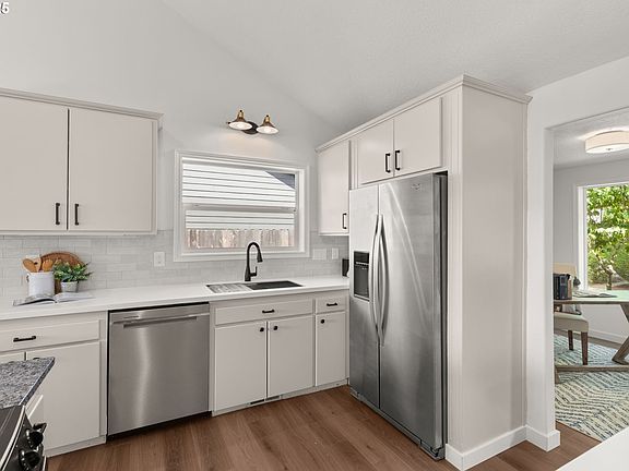Turn-key single-level ranch – 3 bed / 2 bath, move-in ready. Brand new roof, full interior/exterior paint, new LVP & carpet, updated countertops & tile. Vaulted ceilings, central A/C. Newer mechanicals. Slider opens to a level, fully fenced yard with a view. Primary suite with walk-in closet. Oversized two-car garage for storage or workspace. Minutes to downtown Oregon City.