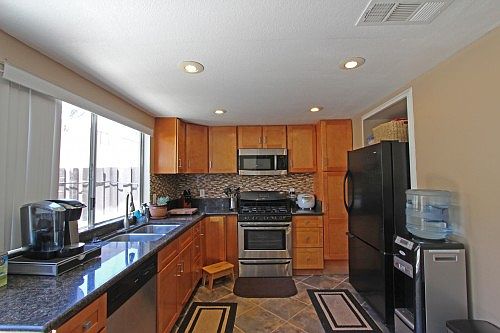 View website: http://16625gridleyrd2.AgentMarketing.com - 2 Bedrooms and 3 Baths.Upstairs Has 2 Master Suites Each With Full Bath.Central AC and Heating.Vaulted Ceilings Upstairs.Granite Counters with Updated Backsplash.Smoothed Ceilings with Recessed Lights.Fireplace in Living Room.Pool and Jacuzzi in gated area.$300.00 HOA Includes Water, Trash, Insurance, Landscaping, Pool, Security and Exterior Maintenance.Updated Fixtures Throughout.Back Patio and Front Patio.2 Car Garage with Remote Control Attached to Private Patio.Washer and Dryer Hook Ups in Garage.Quiet and Peaceful Complex.Short Walk to Cerritos College.Home Faces North.
