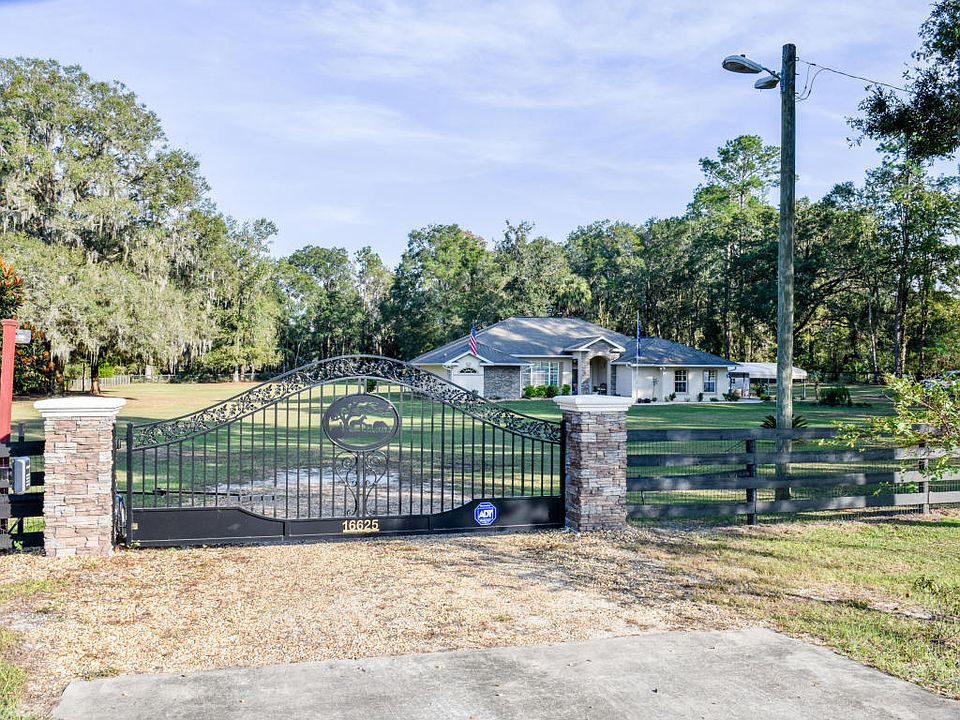 Immaculately kept 4/3 located on 3 beautifully landscaped acres. RV covered parking with 30 and 50 amp svc w septic access, covered entrance to 2-car garage, zoned AC. Small fenced area for pets. Gorgeous front entry leads to tiled foyer, living room and dining room. Open concept kitchen opens to breakfast nook and family room. Large master with en-suite including garden tub and walk in shower. 2 additional beautifully tiled baths for 3 guest rooms. This home has it all.