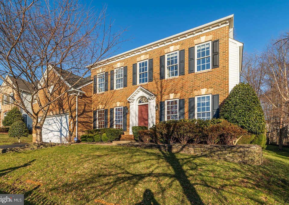 Elegant brick colonial boasts 4 bedrooms, 4.5 baths. Formal dining room and butler's pantry. 2-story family room with gas fireplace. Kitchen features island, granite countertops, stainless steel appliances and built-in desk area. Light-filled extended breakfast room with walls of windows and access out to patio. Private backyard, adjacent to park-like land. Main level office. Master bedroom with sitting area and master bath with soaking tub and glass enclosed shower. Spacious lower level rec room and wet bar with wine/beverage cooler and mini fridge. Walk up stairs to back patio. Community pool. Conveniently located near major routes: Route 1 and Interstate 95.