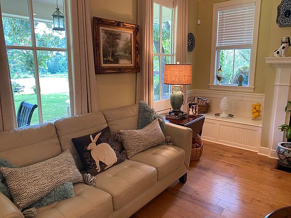 Sunroom could be a third bedroom; the walls are Hardy board with scored concrete floors. Kitchen countertops are granite tiles. Beautiful open plan with many custom details. Beautiful hickory hardwood throughout the home. Custom cabinetry and crown molding. Lots of extra storage. There is a large shop behind the home with a separate room that would be a great "Home Schooling" room. There are 75 acres with a stocked pond. The acreage is designated a "Tree Farm" which gives a tremendous tax break to the owners.Stocked pond and many "Blue Bonnet" blueberry trees. The front porch which spans the front of the home is like an outdoor room with width of 16 feet.