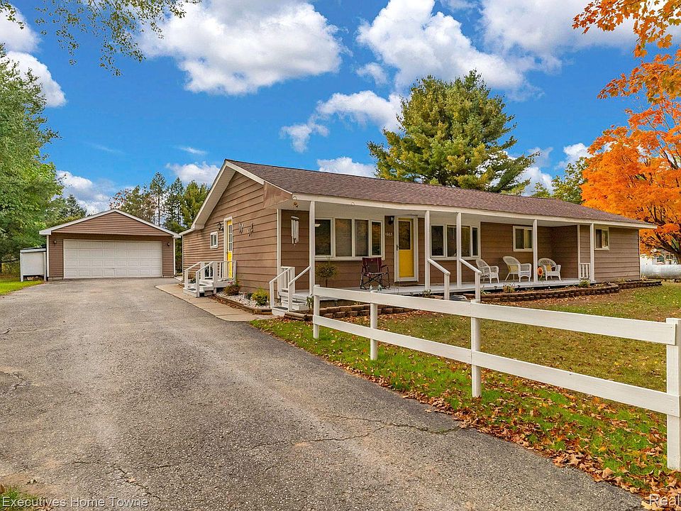 charming 3-bedroom, 1.5-bath ranch-style home nestled on over 2 acres in Wales Township. This home offers a practical one-floor living design with a comfortable and flowing floor plan. The spacious lot provides ample outdoor space, perfect for gardening, outdoor activities, or simply enjoying the peaceful surroundings. The property also includes a detached garage for extra storage or parking needs. With a new roof, this home offers great potential for anyone looking to enjoy country living while still being close to amenities. Don’t miss the opportunity to make this serene property your own! Possible 4th bedroom/office.