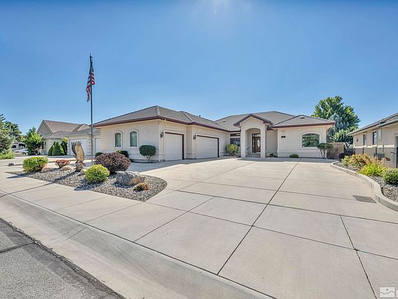 Welcome to your Empire Ranch Estates dream home! This meticulously maintained home sits on the first hole of the Empire Ranch Golf course and has no HOA! The home offers 3 bedrooms that each have their own ensuite, an office/den, high vaulted ceilings in the living room, oversized 3 car garage, spacious open concept, covered outdoor patio, plenty of outdoor space for entertaining and so much more! Don't miss out on this opportunity and schedule your showing today!, There is a trail that goes along the Carson River around the golf course. The course offers 3 nines, 27 holes simulating two 18 hole golf courses. Pool table stays with the home. New AC, heater, and duct work installed in August of 2023.