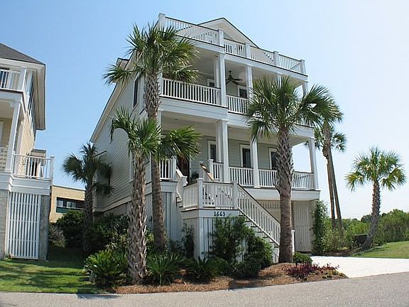 This home hits the dream list - gated deepwater intra-coastal water waterfront community! Elegantly casual 4,776 square foot custom Daly-Sawyer built home. Stunning views of the Intra-coastal waterway, the marsh, and the Ben Sawyer Bridge from every room or one of the six porches - Breathtaking! This wonderful home features four (4) bedrooms, each with its own bathroom. First floor has gracious proportions with 10' ceilings and 8' doors; custom art lighting complements the 9 1/2' wide entry hall way. Beautiful Antique Heart pine floors throughout first floor, stairs, halls and master bedroom; all hallways and stairways have cottage style bead board trim. Very open Kitchen has Cherry Cabinets and Black granite countertops, includes large breakfast counter and a built in desk work area. Kitchen Appliances include: 42" Subzero counter depth refrigerator, Dacor Gas Cook top, Oven and Microwave - Bosch Dishwasher. Family/Living room is comfortable with gas fireplace, cherry bookcases with pull-out storage, this room is large and has ample space to hold large harvest or family style dining table. Adjoining screened porch is ideal for breakfast and watching the boats on the ICW. Separate intimate formal dining alcove is off main hall has large windows and full length lined and interlined silk draperies that convey. Study is pine paneled with large pocket doors. Space can be easily converted to an office. The laundry Room/Butler's Pantry completes the main living level and custom cabinetry with utility sink and two solid surface Corian work counters . The second level Master suite is grand in size with room for a seating area - French doors lead to a covered balcony Large Master Closet with custom shelving and drawers. The Master Bath includes dual sinks, large Serenity Air Bath Tub and a separate Travertine tiled shower. The two second level bedrooms are spacious and feature their own bathrooms and large closets. shower. The two second level bedr
