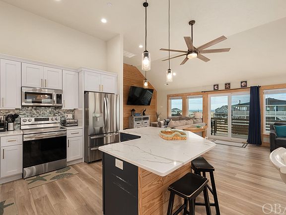 Gorgeous new construction in the 4x4! What's not to love about this house! 4 Bedrooms, 4.5 baths, with open living/dining/kitchen and bonus mid level living room. Add to that a huge private pool and hot tub and you have the perfect beach house or vacation rental machine! Located off the main road on the beautful beaches of Corolla, you will only be 3 miles from paved road but out of the hub bub and amongst the wild horses. Ocean views abound from the generous decking on both top and mid levels. High elevation means x flood zone!