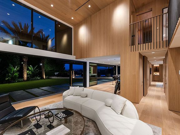 Set on a quiet hillside in Beverly Hills, this Colab House residence captures sweeping views that stretch from the city skyline to the surrounding hills. Gated and surrounded by mature landscaping, the home blends modern design with complete privacy. The main level features soaring ceilings, an open floor plan, and walls of glass that create a seamless connection to the outdoors. The chef's kitchen with high-end appliances opens to the family room, dining area, and bar, making the space ideal for both everyday living and entertaining. Upstairs, the primary suite includes a sitting area, walk-in closet, and spa-like bath with uninterrupted views. A gym, office, and guest suite complete the second floor. The backyard is designed as a private retreat, with a spacious lawn, infinity-edge pool, spa, and sunken fire pitall perfectly positioned to take in stunning sunsets. Fully automated with Savant technology, this home combines modern comfort and striking architecture in one of Beverly Hills' most desirable locations.